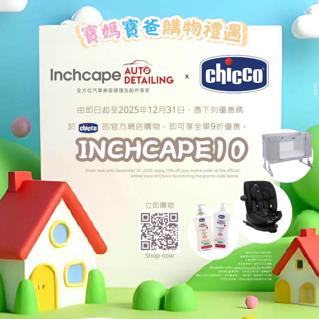 香港兒童汽車座椅法例即將實施,即刻為小朋友揀返款最適合嘅Car seat啦!Inchcape Auto Detailing有優惠俾各位家長,由即日起,憑優惠碼【INCHCAPE10】喺 Chicco 網店購物,即享 9折優惠!